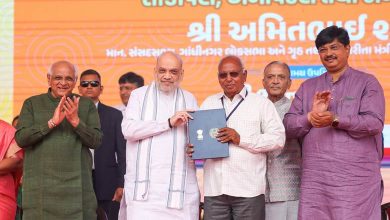 Union Home Minister and Minister of Cooperation Shri Amit Shah distributes land allotment certificates to 205 families of Nava Vanjar village in Ahmedabad, Gujarat