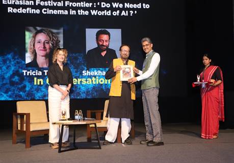 The In Conversation session – ‘An Eurasian Festival Frontier: Do We Need to Redefine Cinema in the World of AI?’ at the 56th International Film Festival of India brought together two of the world’s most respected festival personalities: Tricia Tuttle, Festival Director of the Berlin International Film Festival, and Shekhar Kapur, Festival Director of IFFI. Even though the session was moderated by Kapur, the exchange unfolded like a dynamic two-way conversation, exploring the evolving intersection of AI, creativity, and the future of film festivals.
