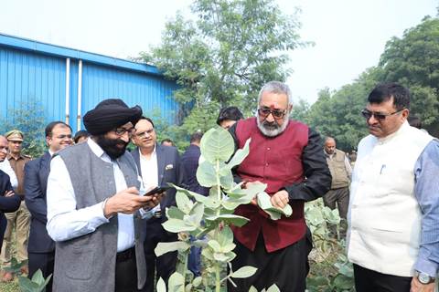 Union Textiles Minister Shri Giriraj Singh visited Northern Indian Textile Research Association (NITRA) today and inspected the Milkweed (Aak) crop being cultivated on the campus. The Union Minister appreciated NITRA’s pioneering research on Aak/Milkweed, noting that it has the potential to bring a revolution in the textile sector. The minister also mentioned that this is one of the smart-age fibres and NITRA has already transferred this technology to several leading companies, and in discussion with others for adopting it.