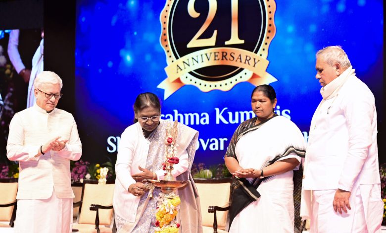 The President of India, Smt Droupadi Murmu, addressed the conference on ‘Timeless Wisdom of Bharat: Pathways of Peace and Progress’, being organised by Brahma Kumaris Shanti Sarovar to mark its 21st Anniversary at Hyderabad today (December 20, 2025).