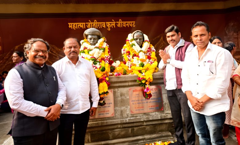 On the occasion of the birth anniversary of Krantijyoti Savitribai Phule, floral tributes were offered to the busts of Savitribai Phule and Mahatma Jyotirao Phule at the memorial in Phule Wada by senior social activist Thakaji Baba Gaikwad.