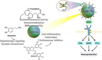 The research work carried out by Dr. Jiban Jyoti Panda and team (Himanshu Shekhar Panda & Sumit) from INST, Mohali, with support from Dr. Ashok Kumar Datusalia (NIPER Raebareli) and Dr Nisha Singh (Gujrat Biotechnology University), involves the synthesis of EDTNPs using biocompatible assembly techniques like pressure assisted hydrothermal and electrostatic based co-incubation methods to combine antioxidant, neurotransmitter, and amino acid components. These nanoparticles were then functionalized with BDNF, producing B-EDTNPs with enhanced neuroprotective potential.