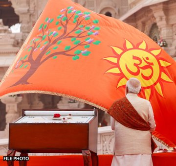 “With the boundless grace and blessings of Lord Shri Ram, the resolve of countless Ram devotees of five centuries has come true. Today, Ram Lalla is seated again in his grand abode and this year, the Dharma flag of Ayodhya is witnessing the Pratishtha Dwadashi of Ram Lalla. It is my good fortune that last month I got the opportunity to perform the holy installation of this flag.”