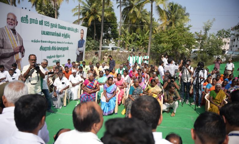 Union Minister of Agriculture and Farmers’ Welfare, and Rural Development, Shri Shivraj Singh Chouhan on Monday said in Erode, Tamil Nadu, that the ‘Viksit Bharat – G Ram G’ law is a significant step towards building self-reliant (Atmanirbhar) villages. Addressing workers and labourers in Erode, the Union Minister explained various provisions of this ambitious initiative, and said that the law is a concrete effort to strengthen employment generation, expand basic facilities, and promote self-sufficiency in villages. Shri Shivraj Singh Chouhan expressed confidence that the goal of developed and prosperous villages would be achieved only through public participation.
