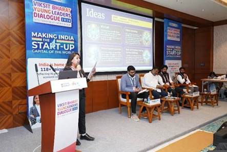 Under this theme, the young leaders presented their ideas and had an interactive session with the domain area experts, providing a platform for participants to engage directly with policymakers and industry practitioners on the broader startup ecosystem. The session featured Shri Harish Balayogi, Member of Parliament from Andhra Pradesh; Shri Kaivalya Vohra, Co-founder and Chief Technology Officer of Zepto; Shri Ramprasad Reddy, Minister of Youth Affairs and Sports, Government of Andhra Pradesh; and Shri Ravi Naidu, Chairperson, Sports Authority of Andhra Pradesh.