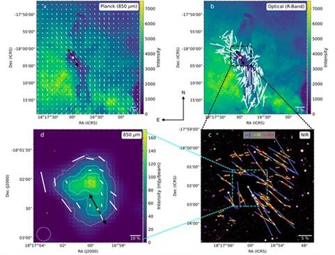 They have unveiled critical new observational evidence linking magnetic fields from the scale of molecular clouds down to the scale of dense star-forming cores using polarisation studies.