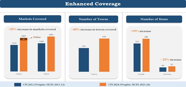 • Strengthened representation of modern consumption items such as online media services and fuels (CNG/PNG)