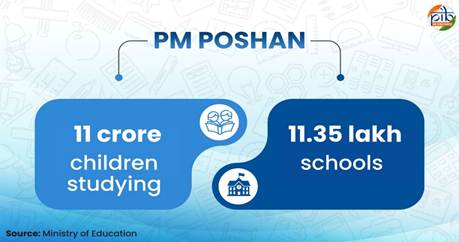 Nutritious school meals under PM POSHAN (formerly Mid-Day Meal Scheme)play a vital role in helping children—especially girls—stay hungry-free, attend classes regularly, concentrate better, and thrive in class. This is a centrally-sponsored scheme run by the Ministry of Education, for providing one hot cooked nutritious meal for children studying in Classes I-VIII in Government and Government-aided schools.