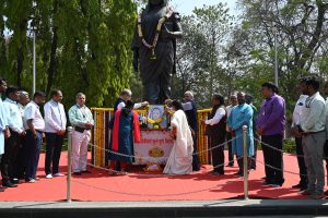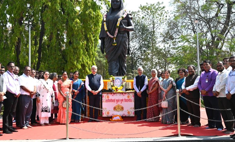Savitribai Phule Pune University paid heartfelt tribute to Krantijyoti Savitribai Phule, the pioneer of women’s education in India, on the occasion of her death anniversary. Vice Chancellor Prof. (Dr.) Suresh Gosavi offered floral tributes to the statue of Savitribai Phule located in front of the university’s main building.