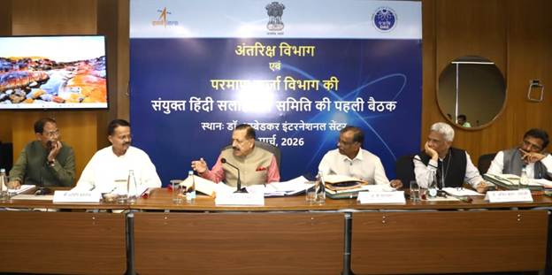 Dr. Jitendra Singh today addressed the Hindi Salahkar Meeting of the Department of Space (DoS) and the Department of Atomic Energy (DAE). Highlighting the increasing adoption of Hindi in administrative work, the Union Minister noted that few years ago only around 14 percent of official work was conducted in Hindi, underlining the need for sustained efforts to promote greater use of the language in government functioning. He appreciated the efforts made by the leadership of ISRO and the Department of Atomic Energy in promoting Hindi learning and encouraging its use in official and technical communication within their respective organisations.